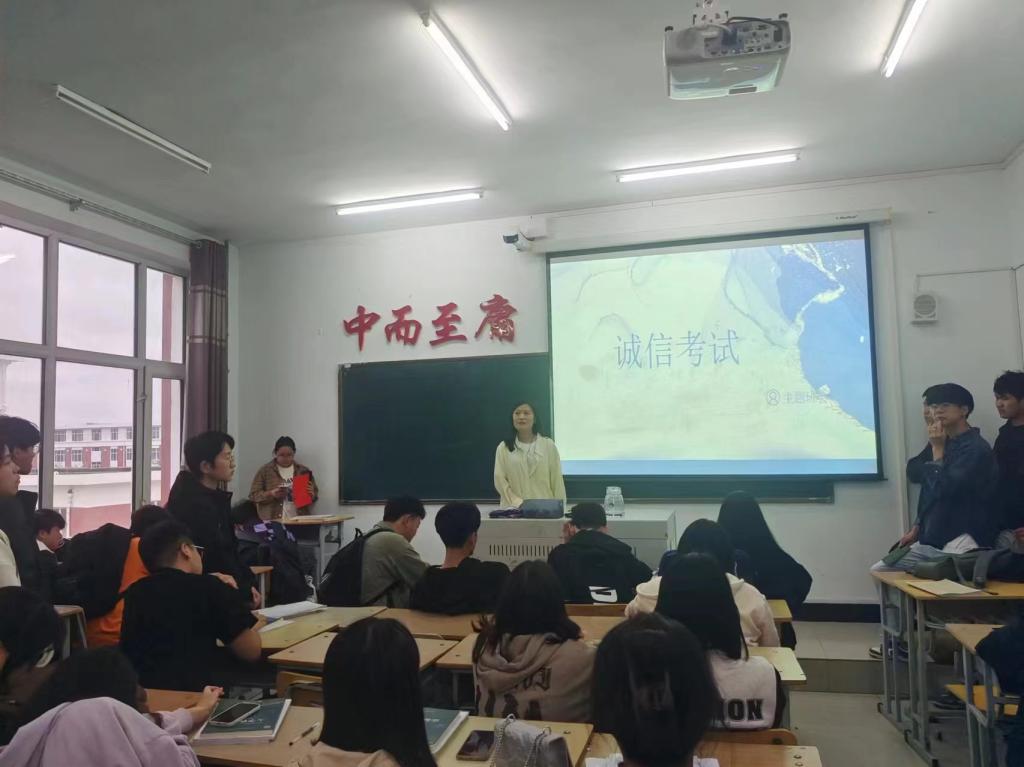 5月10日下午,集电231班,电科231班与电科232班共同在一号教学楼的1308教室召开“诚信考试”主题班会,本次会议由辅导员张莹老师主持,此次会议共有一百人参加。