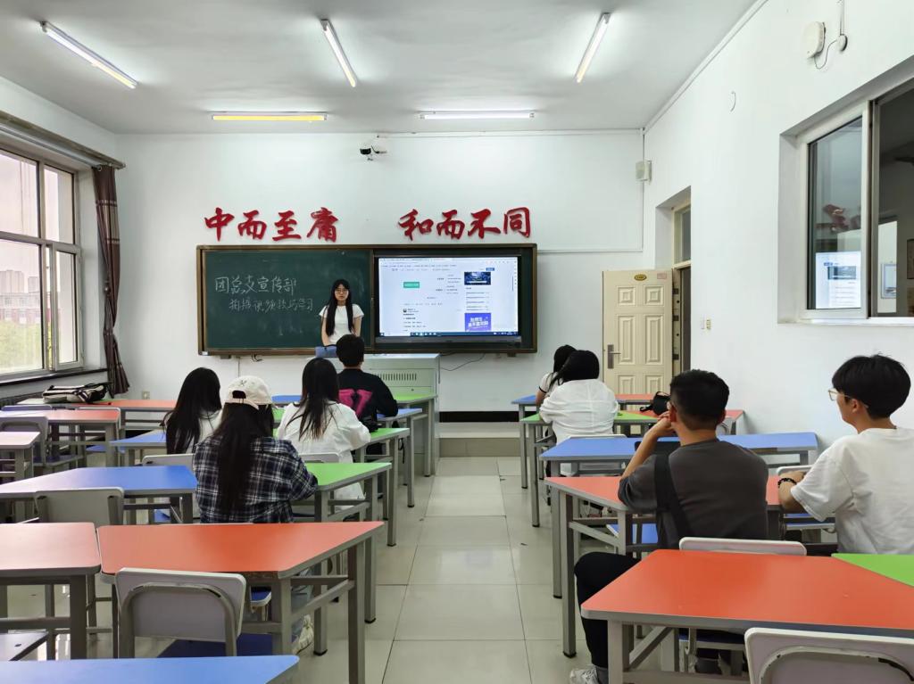 首先,宣传部部长焦滢橘指出此次会议主要针对拍摄视频技巧学习,通过一些学习技巧并不断地实践和练习,将够拍摄出更加精美、专业的视频作品。其次,宣传部部长焦滢橘提醒同学们要注意一些细节,比如拍摄前的准备,要先确定主题和目的选择合适的场地;注意光线问题,人物动作等等。最后,宣传部部长焦滢橘指出后期编辑是一个视频最重要的部分,在剪辑和调整,添加音效和配乐时要细心。
