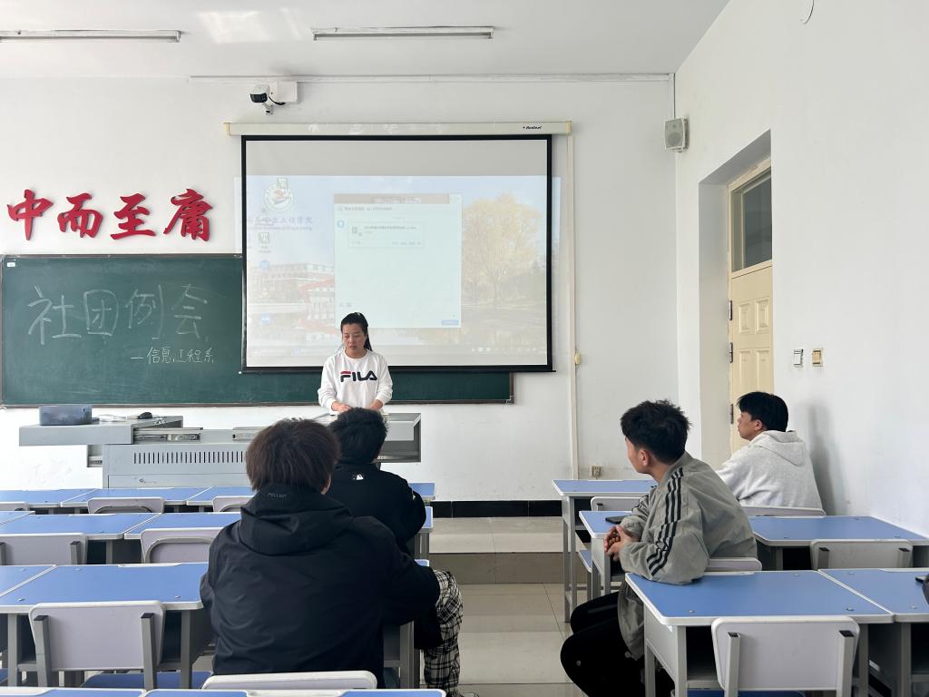 4月29日上午,信息工程系为加强社团活动的开展,以及到梦空间使用的最新要求,在一号教学区1411教室开展社团例会,本次会议由信息工程系薛苗苗老师主持,系团总支组织部部长郑智柏辅持,信息工程系各社团负责人共14人参加。