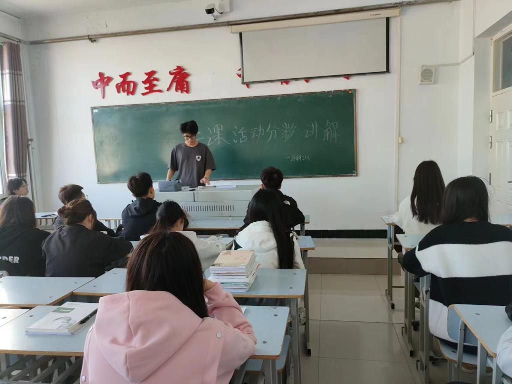 首先,班长武梦琳对第二课堂活动分数的意义、获取途径以及计算方法进行了深入细致的讲解。随后,武梦琳还与同学们进行了互动交流,解答了大家关于第二课堂活动分数的疑问,进一步加深了同学们对这一内容的理解。最后,武梦琳对第二课堂活动分数进行了总结,他表示:“希望同学们在未来能够积极参加各种活动,不断提升自己的综合素质。”
