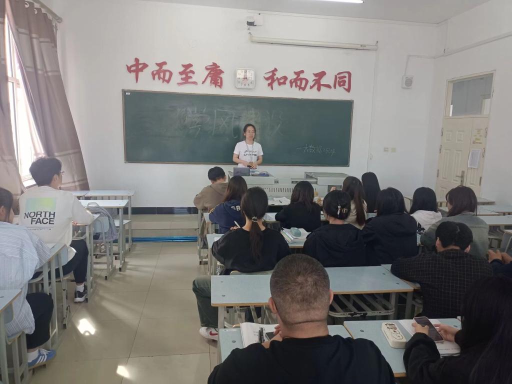 首先,辅导员杨佳佳指出为了营造良好的学习氛围,提升同学们的学习动力,加强班级学风建设,特举办此次“学风建设”主题班会。其次,辅导员杨佳佳通过班级最近出现的问题比如,上课玩手机,打游戏,睡觉等,提醒同学们目前的学习状态。最后,杨佳佳老师希望通过改善班级的学风建设使同学们学习动力得到激发,学习效率得到提高,班级内部形成积极向上、互帮互助的学习氛围。