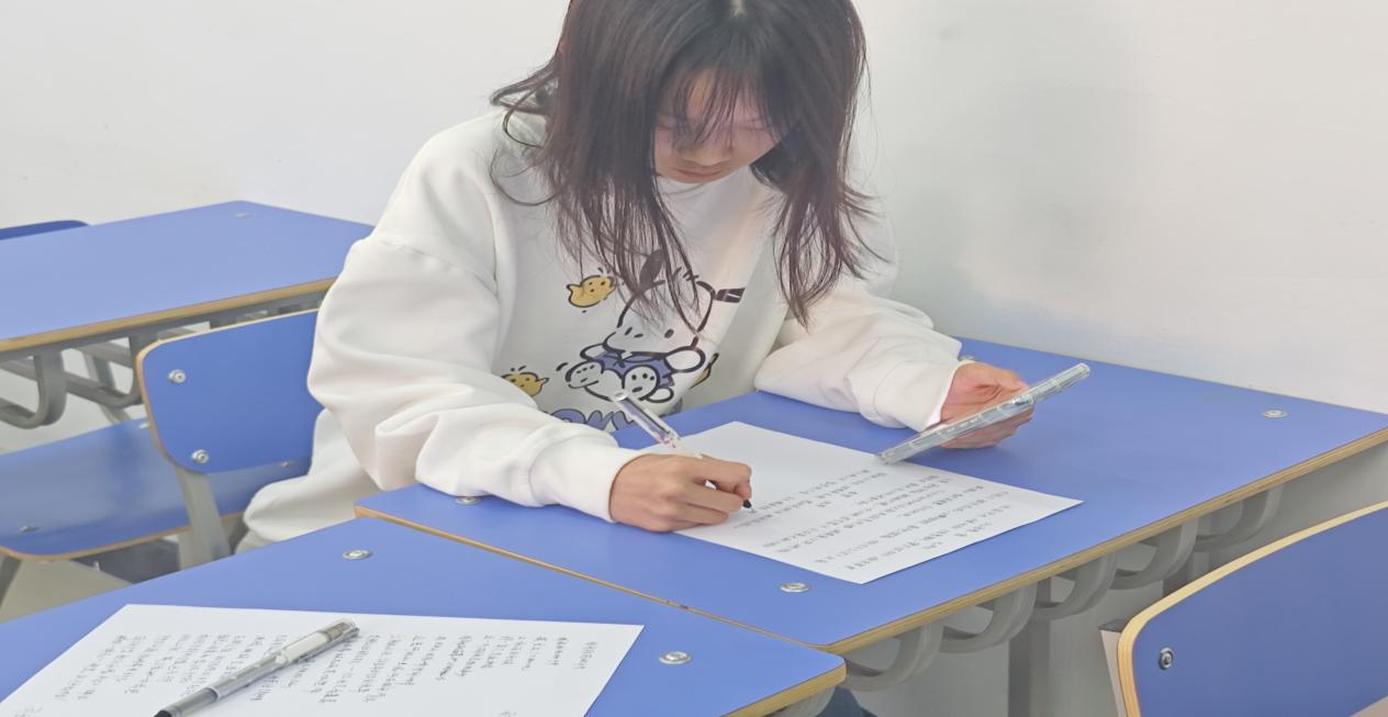 比赛中,同学们或端庄稳重,或灵动飘逸,他们的书法作品或大气磅礴,或细腻入微,充分展现了书法艺术的魅力和大学生的精神风貌。他们用笔墨抒发着对祖国的深情厚意,表达着对中华民族优秀传统文化的热爱和传承。