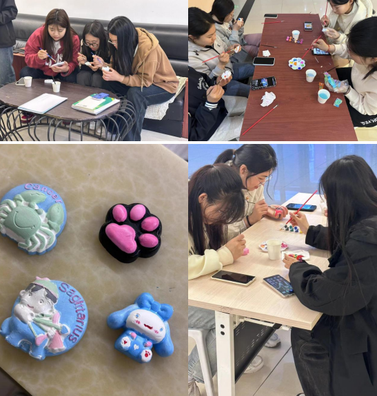 在活动过程中,各位纷纷挑选自己喜爱的石膏娃娃,石膏娃娃们静静地等待着各位的创意改造。各位手持画笔,蘸取五颜六色的颜料,一笔一划地描绘出心中的色彩,开始为石膏娃娃们“换装”。经过一番努力,从素白的石膏到色彩斑斓的艺术品,每一个作品都凝聚了同学们的创意与努力,原本素白的石膏娃娃们变得栩栩如生,各具特色。现场气氛热烈,不时传来阵阵欢声笑语,各位在创作中感受到了乐趣与成就感。