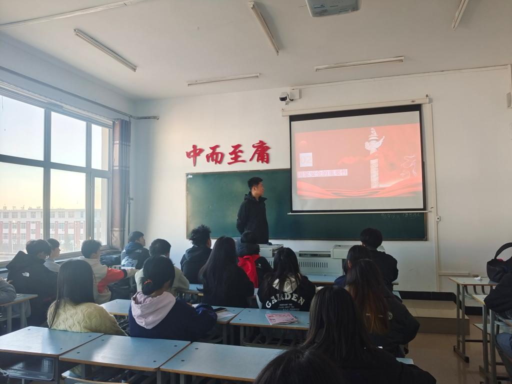 本次班会的目的是让同学们明白进行国家安全教育的意义,提高学生的国家安全意识,进一步树立国家安全的危机意识和敌情意识。班会首先,毛同学讲述了国家安全教育的基本概念,主要内容及其重要性,使同学们充分了解到国家安全对于每个人都是至关重要的。随后,毛同学阐述了我国国家的安全形势和国家的法律法规,让同学们了解到国家面临的主要安全挑战,以及国家对其的应对策略。然后,毛同学强调了个人在国家安全的角色与开展本次安全教育的意义,增强全民安全意识,提高国家防护能力。最后,毛同学阐述了作为大学生如何参与国家的安全教育工作,应积极了解国家安全法律法规,参与社区组织的安全活动,提高个人信息保护意识。