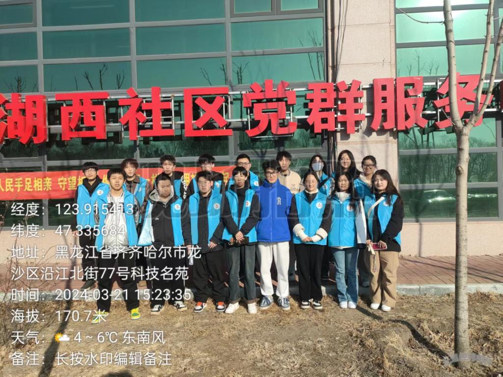 3月21日下午,计科233班青工委员荆钰莹带领班级同学在齐齐哈尔市龙沙区湖滨街道办事处举办社区清扫志愿服务活动,共二十人参加。