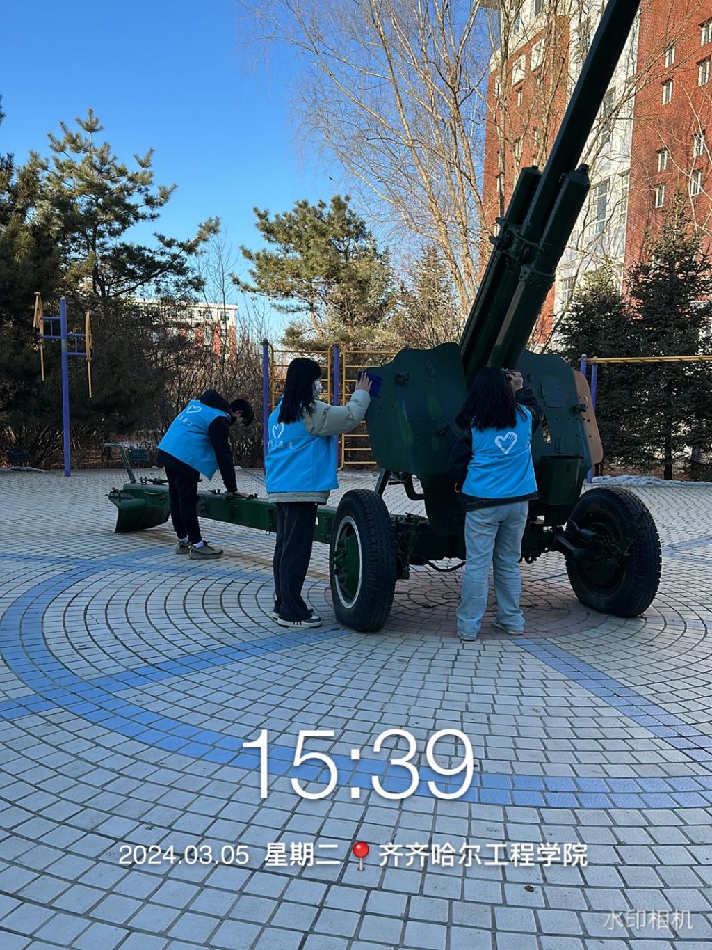 首先,班长和团支书为志愿者们准备好做志愿的服装和志愿工具,随后,志愿者们分工明确用抹布擦拭学校公共措施,最后,由团支书和青工委员统一收取服装和工具并及时归还。