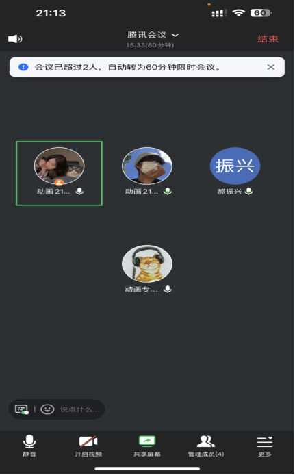 1月26日下午在钉钉线上开展社会实践学期第三次会议,由张璐璇主持,其余成员魏智杰、郝振兴、段紫雯3人参加。