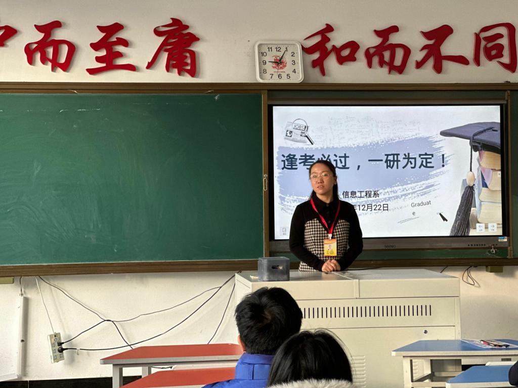 信息工程系于12月22日上午9时,在1教1409教室为年度考研同学召开考前动员会,系副主任刘春媛、党总支副书记孙晓芳以及部分考研学生代表共30余人参加。
