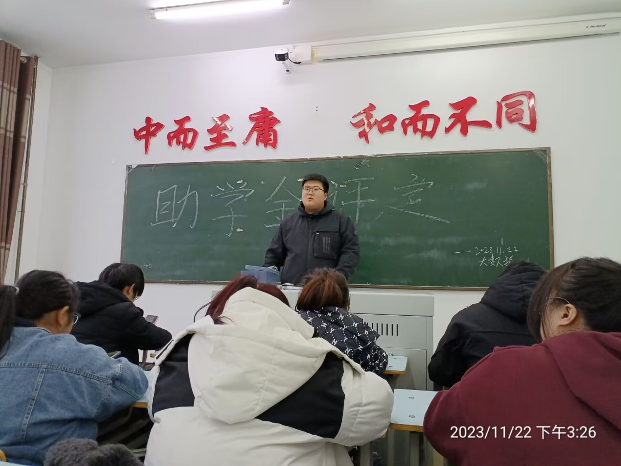 11月22日上午,大数据221班于1教学楼1306室召开“2023年秋季国家助学金评定”主题班会,全员到齐。评审小组由班干代表班长赵栋栋、团支书张林溪、学委效永康和学生代表杨悦、郑舒丹5位同学组成,共15名同学参与审评。