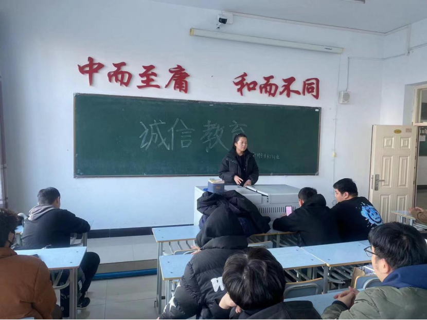 首先,薛老师给同学们讲解了诚信教育的重要性,向同学们灌输了要诚实守信的思想。告诫同学们考试周来临,好好复习功课,诚信考试。其次,薛老师向大家讲解了本次的考试要求,并对一些在学习上可能出现的问题进行讨论,积极帮助同学们解决问题。最后,老师祝愿我们每一位同学都能考出好成绩,可以诚信为本,不忘初心,完美结束自己在本学期的课程。