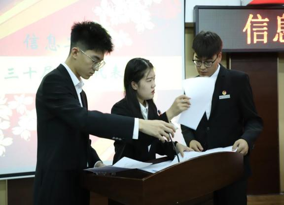 大会竞选开始,学生代表以公平公正原则进行不记名投票。由第二十九届学生会主团席团成员候慧莹公布投票结果,刘贝贝、张越当选第三十届信息工程系学生会主席团成员,徐明金、李冬博、李卓睿、姜雯嘉、赵长江、朱薇当选学生会部长。