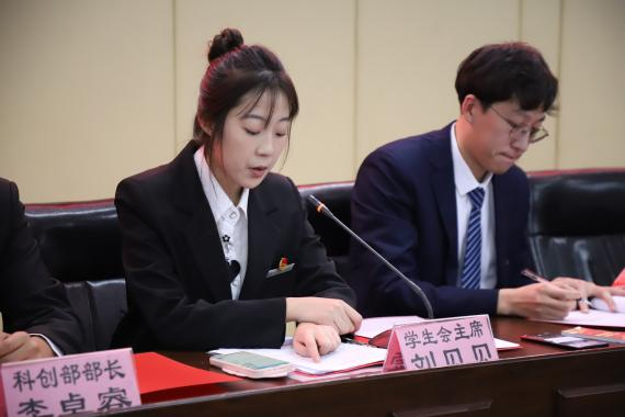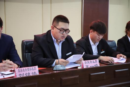 学生会指导教师刘铭炜致辞,他表示充分肯定了第二十九届学生会在过去一年中取得的成绩,并相信,本届学生会,在老师的正确领导下,在全体学生会成员的共同努力下,一定会继往开来,扎实工作。