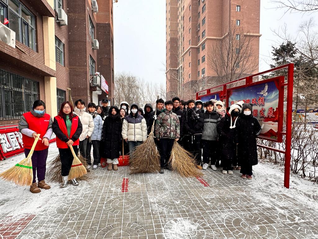通过此次志愿扫雪活动,既增强了同学们的团结意识,又让同学们体会到了北方冬天独有的乐趣。