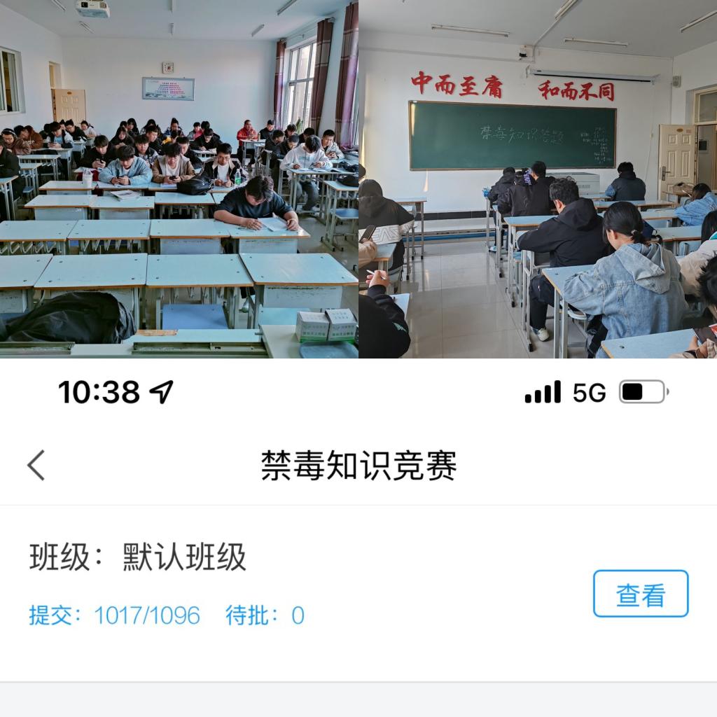 通过组织禁毒知识答题活动学生们同时间进行学习通答题,共计提交1017份答卷,考察了学生们对禁毒知识的掌握程度,激发学生们对禁毒的兴趣和参与度。