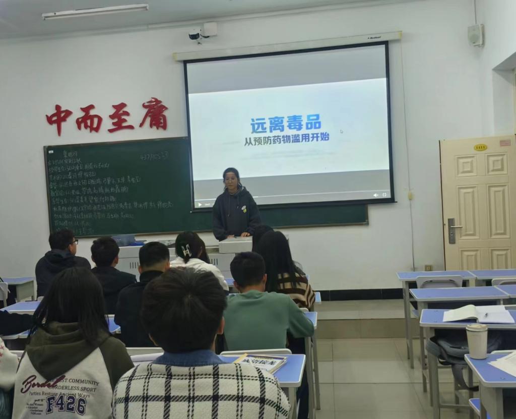 首先,集电231班学习委员赵玉通过帷幕上投稿的文件对毒品的种类做了讲解,从毒品服用后产生不同的作用效果做了分类,可知毒品分为天然毒品,半合成毒品以及合成毒品三类。进一步的讲解是关于有着“恶魔花”之称的毒品“罂粟”,学习委员赵玉表示: 罂粟是提取毒品海洛因的主要毒品源植物,服用后对身体造成危害,慢性中毒等,若长期服用便会成瘾,且通过讲解,对成瘾的原因也有了一定得了解,分为生理因素,社会因素以及心理因素等三方面,主要的还是:吸毒者吸了海洛因、外来的类吗啡肽物质进入人体后,减少并抑制了自身吗啡肽的分泌,形成了过于的依赖等问题