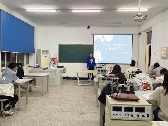 李阁老师向大家介绍了2023年专业的就业情况,并结合网上搜集到的数据,向大家分析了一下大家将面临的就业形势。李阁老师强调,目前无论是去企业就业还是考研考公,竞争压力都非常大,“千军万马过独木桥”,因此,毕业生应该明确自身定位,确定适合自己的就业方向,要学会推销自己,尽早就业,积极就业。同时,李阁老师为大家介绍了一些就业技巧,帮助大家更好地根据自身特点,结合社会职业需求择业。