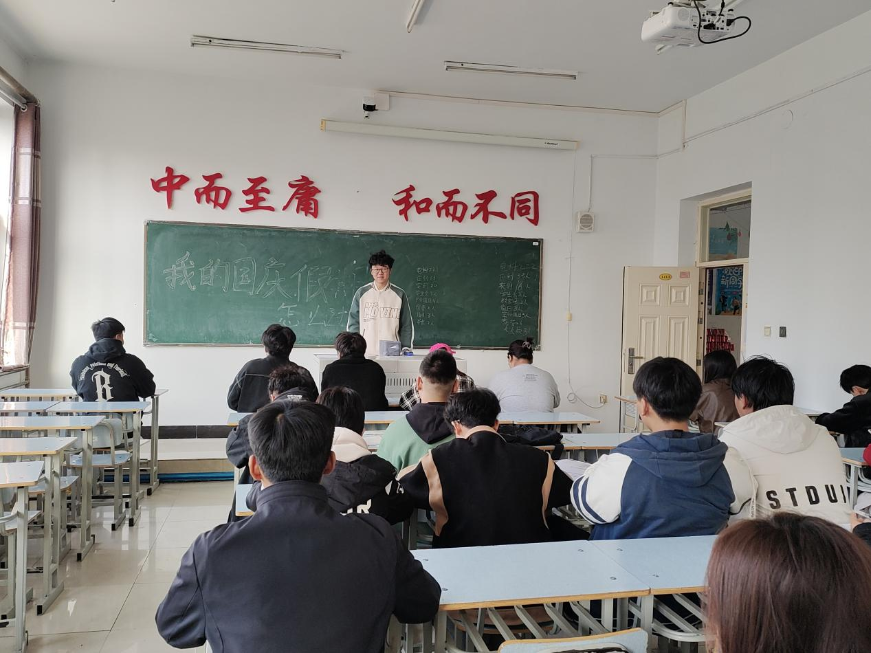 班会中,首先,辅导员与学生进行了深入而有意义的对话。辅导员们分享了一些具体的经验,帮助学生制定和实施实用的学习计划。同时,学生也有机会表达自己的困惑和需求。接下来,动员激励:针对国庆假期放松心态和疏于学习的现象,班会强调了重返学业的重要性,并督促学生们将精力重新聚焦于学习。然后是学业规划:班会提供了关于如何制定明确的学业目标和计划的建议。辅导员刘铭炜们鼓励学生们合理安排时间、保持专注,并培养良好的学习习惯。最后是心理健康:认识到学业压力对于学生心理健康的影响,班长周子航分享如何有效管理学业压力,养成积极心态。学生们被鼓励互相支持、开展有益身心的活动,以提升他们的综合素养。