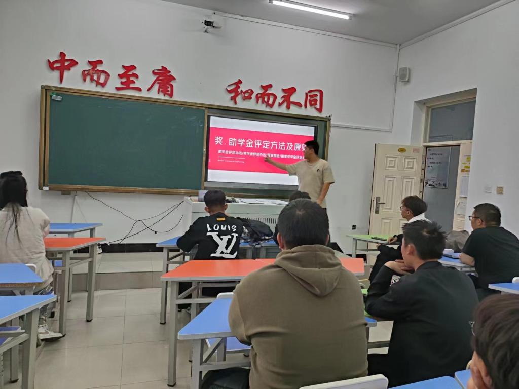 首先,辅导员学长王佳绩说:“拜伦曾有言,青年人满身都是精力,正像春天的河水一样丰富。相信大家初来齐齐哈尔工程学院,一定不想虚度你们的大学时光,今天由我来讲解奖、助学金评定方法及原则。我宣布奖、助学金评定方法及原则班会正式开始。”随后,辅导员学长王佳绩讲到了奖、助学金包括国奖和校奖,国奖只有在一年中获得两次校奖才有资格评选,让我们对奖、助学金评选有了充分的认识。最后,辅导员学长王佳绩强调了挂科是没有资格评选奖学金的,如果补考过了也要等到第二年才有资格评选。他说:“莎士比亚曾有言,青春是一个短暂的美梦,当你醒来时,它早已消失无踪。希望大家都能在大学期间有机会拿到奖学金,不负自己的青春韶华。”