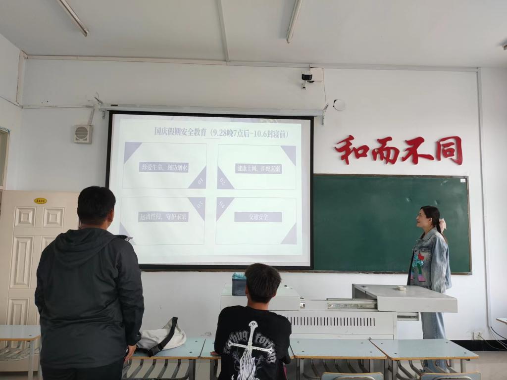 9月27日下午,集电231班在一号教学楼1402开展以“国庆纪律与安全”为主题的班会,本次班会由集电231班辅导员张莹老师主持,集电231班共51名同学全部参与此次班会,为在国庆小长假期间的注意事项和外出安全做了梳理。