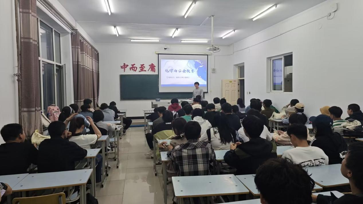 9月26日下午,22级电科专业于一教1413召开纪律与安全主题班会,本次班会由辅导员刘铭炜主持,电科221班、电科222班67人参加。