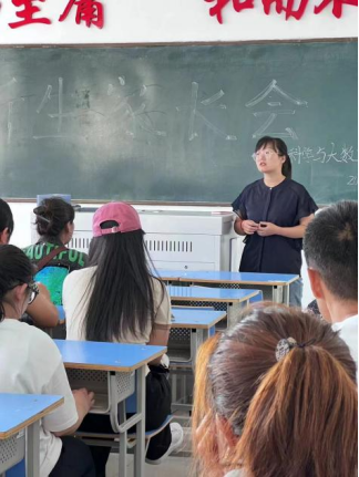 辅导员杨佳佳老师介绍了军训对于提高学生自律性培养团队精神的深远意义。杨老师也将高中学习和大学学习进行了对比,希望各位家校携手帮助同学们实现从被动学习到主动学习的转变,并进一步锻炼自己的实践能力,全面发展综合实力。最后由兰天月老师与家长进行互动交流,对家长关心的课程学习、生活设施等问题现场答疑解惑,解答家长的疑问,为家校共育奠定基础。