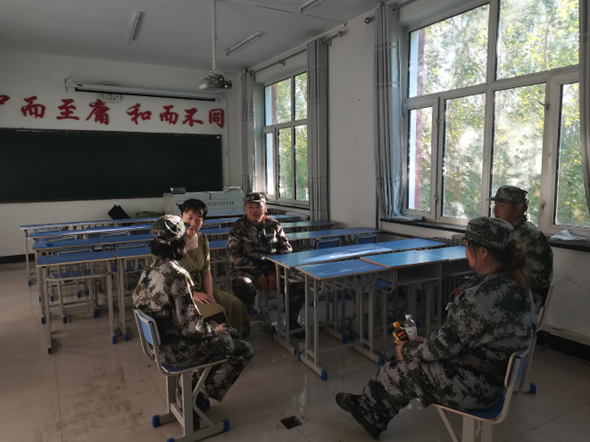 随后,齐老师针对新生军训的进展情况加以了解。齐老师表示军训是大学生活中的一大挑战,也是锻炼意志和团结协作的重要机会。同时分享了自己的军训经历,让学生们在轻松的氛围中感受到了战友情谊的珍贵。同时,老师们提供了宝贵的建议,帮助新生们在即将到来的徒步中更好地适应和成长。