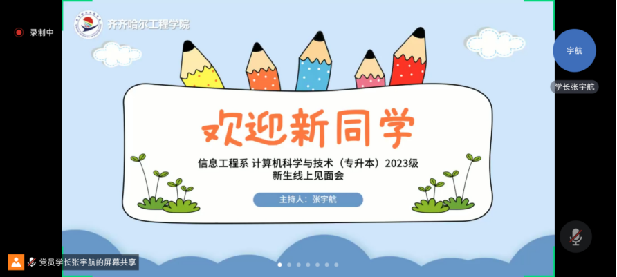 2023年8月11日,23级计科专升本新生在腾讯会议召开线上新生见面会,此次会议由党员学长张宇航主持。