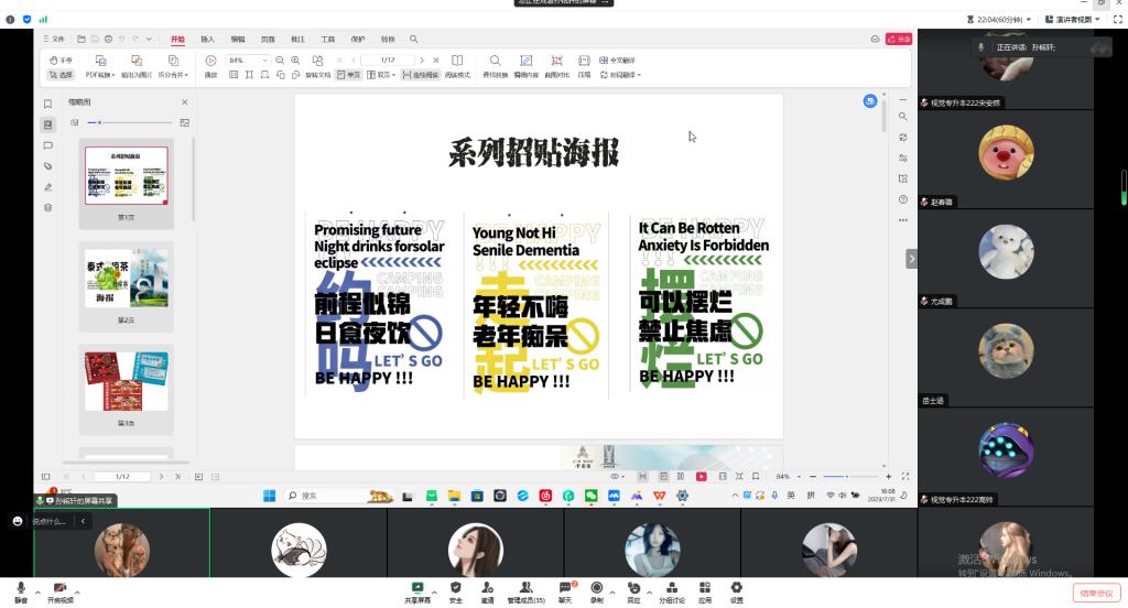 7月31日下午,视觉传达专业专升本222班在腾讯会议进行实践学期第六周实习报告总结,视觉专升本222班全体学生参加,由齐媛园老师进行主持。