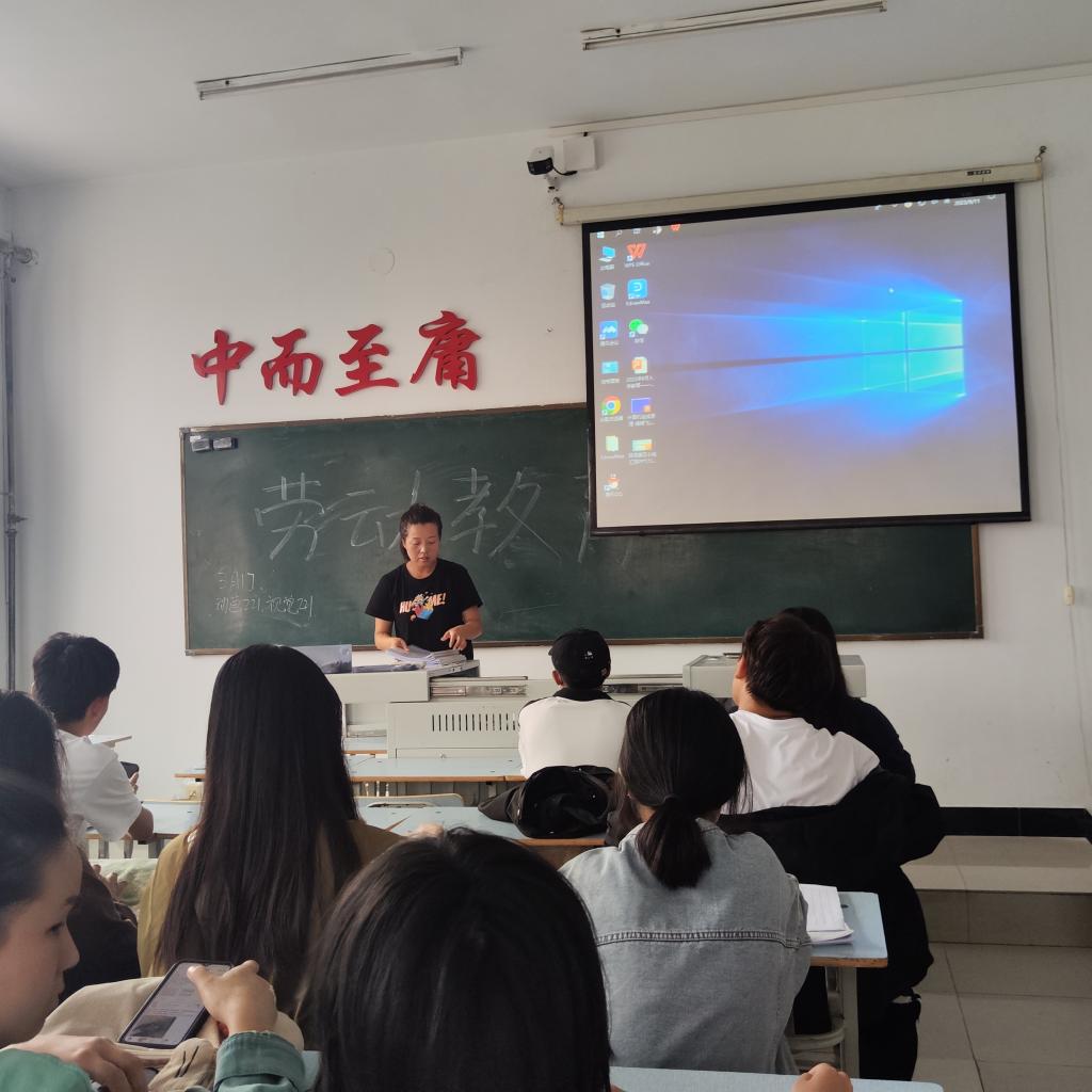 首先,辅导员薛苗苗讲述了劳动对我们的意义。其次,主要介绍劳动教育的重点是在系统的文化知识之外自目的,有计划地组织日常生活劳动。重点介绍了劳动理论教育体系的内容,呼吁大家要积极参与劳动,懂得劳动教育的必要性。加强马克思主义劳动观教育。最后,辅导员薛苗苗对本次班会做出总结,强调了各专业第三学期具有的劳动属性,能够帮助学生掌握专业相关技术,提高自立自强能力,并鼓励同学们多参与劳动,体验劳动中的感受。