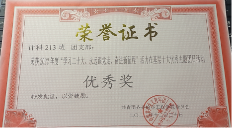 团支部不仅在思想上积极跟随党的脚步,行动上也毫不懈怠,支部成员们不忘初心跟党走,积极参加学校开展的各项活动,丰富了课余生活,提高了综合素质,增强了团队精神和集体凝聚力,更展现了当代大学生积极向上的风貌。在“学习二十大、永远跟党走、奋进新征程”活力在基层十大优秀主题团日活动中,获得优秀奖。