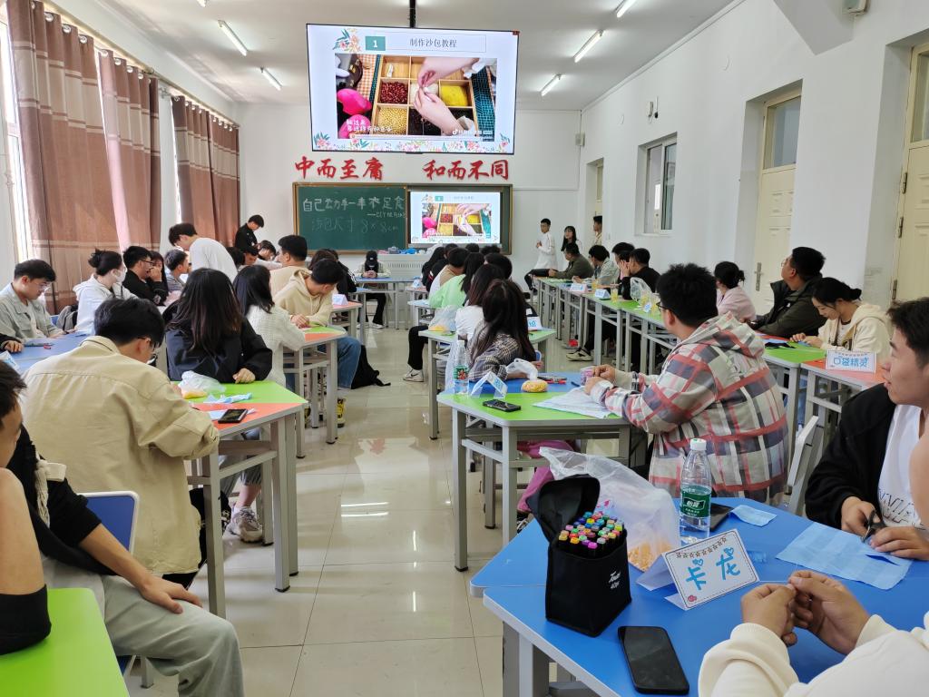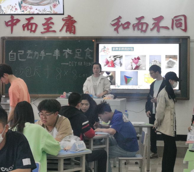 活动现场气氛热烈,大家相互帮助、交流心得。有些同学刚开始不太熟练,但通过不断地尝试和练习,最终成功地完成了自己的作品。而有些同学则展现出了非常高超的手工技巧,一个个精美的沙包在他们手中诞生。