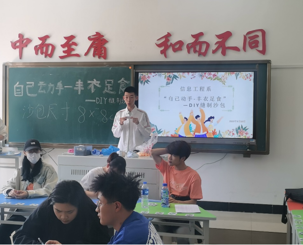 5月10日,信息工程系在一教1405教室举办了一场别开生面的手工缝制沙包活动。这次活动的目的是让同学们在享受手工艺术带来的乐趣的同时,学习如何自己动手丰衣足食,提高生活技能和创造力。参加活动的同学们来自全系不同的专业和年级。