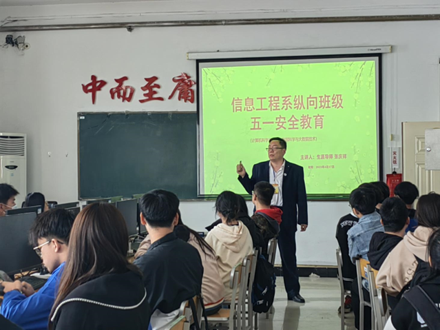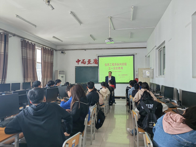 4月27日中午,生涯导师张庆祥在一号教学区3401机房召开纵向班级五一安全教育会,共有30名同学参会。