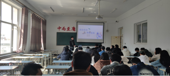 为了提高学生的就业方向,首先,由主持人刘铭炜老师展开叙述2023届毕业统计和就业概率,毕业人数达1158万人次,职业岗位严重不足,就业形势严峻,大学生应该有明确的目标,准备去做什么去干什么。其次,主持人就职业的概念向学生询问目标,班级同学不不相同,就就业的方向通过考研、直接就业、参军、创业等各个方面。最后面对就业在即的严峻呼吁同学们有明确的目标方向去砥砺前行。