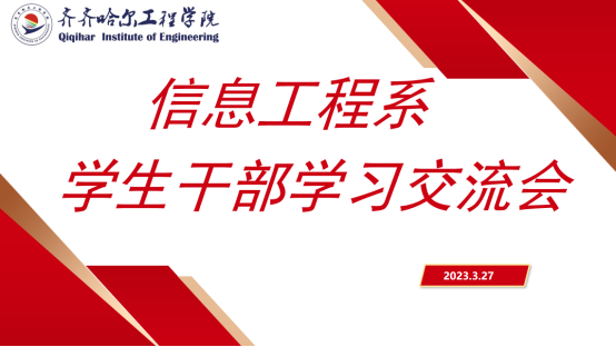 3月27日下午5:00,信息工程系在一教b区党员之家召开了学生干部学习交流会,信息工程系学生工作副主任孙晓芳、团总支指导教师刘阳、学生会指导教师刘铭炜、全体学生干部参加本次会议,会议由孙晓芳主持。