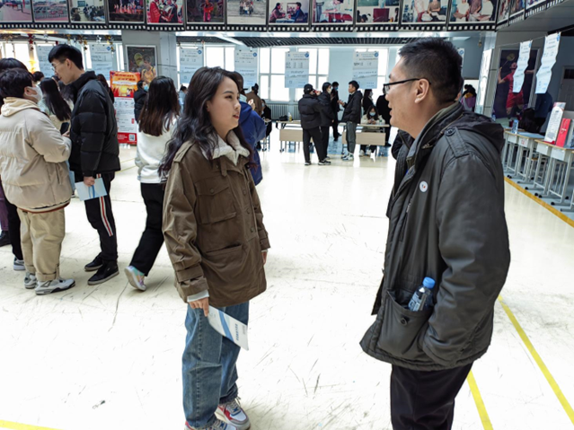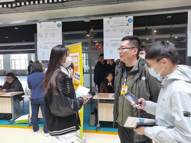 3月24日下午,生涯导师张庆祥带领所负责的计算机科学与技术专业大三的8名学生来到学校汽车大楼三楼参加学生发展中心组织的2023届毕业生供需见面会,进行就业招聘实战模拟演练。