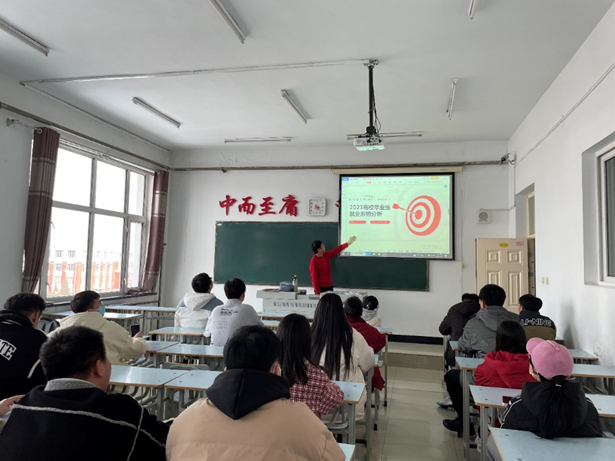 李阁老师向大家介绍了2023年的就业形式。结合历年就业数据,以及与专业合作的企业——昆山丘钛有限公司招聘岗位减半的实例,向大家强调毕业生应该明确自身定位,确定适合自己的就业方向,尽早就业。同时,也为大三、大二及大一的同学介绍了未来的就业情况分析,要求大家深挖自身潜力,提高抗压能力,为大家提出了对自己未来规划的指导意见,无论到大四的时候选择就业还是考研升学,都应当努力学习,提升自己的能力,使自己更具竞争力。