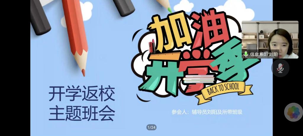 2月 23日晚,视觉专升本211班在腾讯会议视频上开展“开学返校主题班会-加油开学季”,本次班会由导员刘阳主持,班级全员参加。
