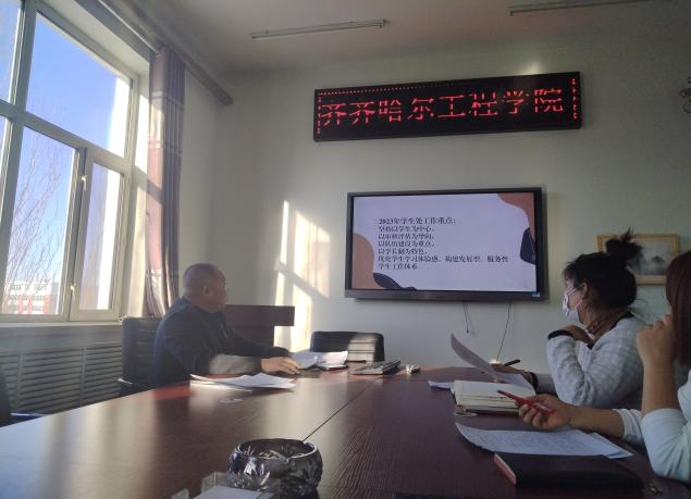 2月7日下午,信息工程系在1号教学楼b区会议室召开2023年学生工作重点会议,会议由信息工程系党总支副书记孙晓芳主持,信息工程系全体辅导员参加本次会议。