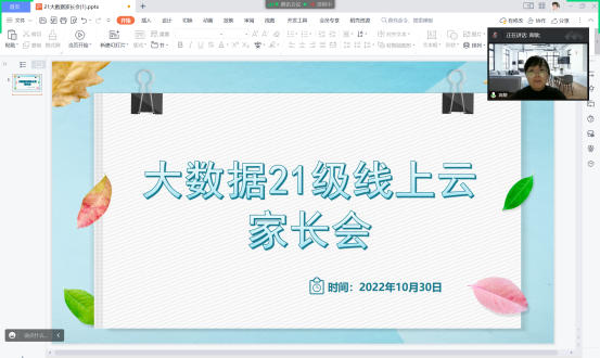 10月30日下午,数据科学与大数据技术专业召开线上云家长会,会议由大数据211班李秋洋主持,专业长高敏、辅导员兰天月、以及大数据专业的全体家长参加会议。