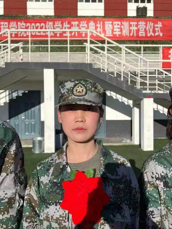 视觉211班郭洳彤在军训中展现了巾帼不让须眉的精神,发挥带头作用,使其自我突破的同时帮助团队突破,在军训期间迅速成长,为即将开始的大学生活培养了坚毅品格与优秀品质。
