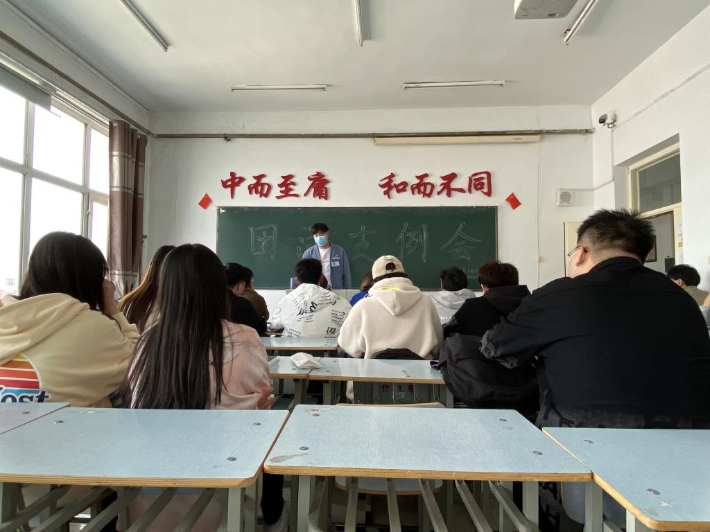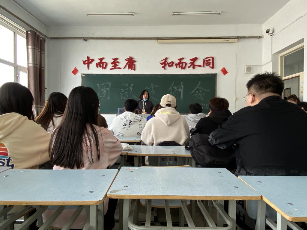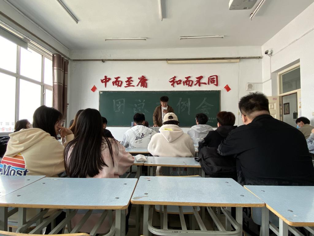 本次例会的主要目的为团支书做前一周的工作汇报与概括了青年大学习的完成率。首先,各班级团支书进行工作汇报,并且对今后工作做出了计划。随后,团总支书记刘阳老师在例会中指出认真抓好青年大学习工作,强调了团总支各个工作的重要性和工作完成质量,要求团干部作为班级与团总支的重要纽带,要起到带头模范作用,要积极组织同学多参与学院、团委、班级组织的各项活动,提高班级团员素质。最后,团总支副书记姚鹏龙对团干部们的汇报工作给予了肯定和鼓励,同时根据汇报中不足作出重点进行强调,总结上一周各班级工作情况的同时,进行了分析和总结。