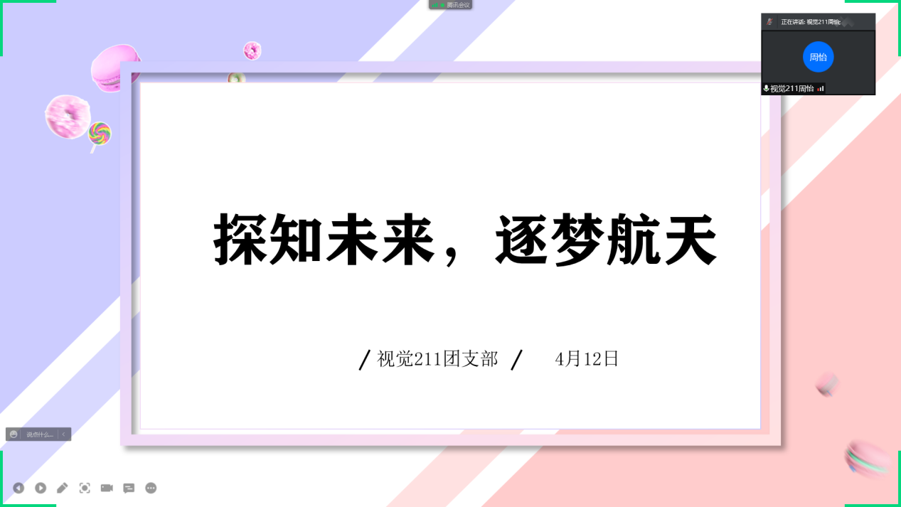 4月12下午,视觉211班在腾讯会议上开展“探知未来,逐梦航天”主题团活。本次团活由团支书周怡主持,以及视觉211班41人参加本次团活。