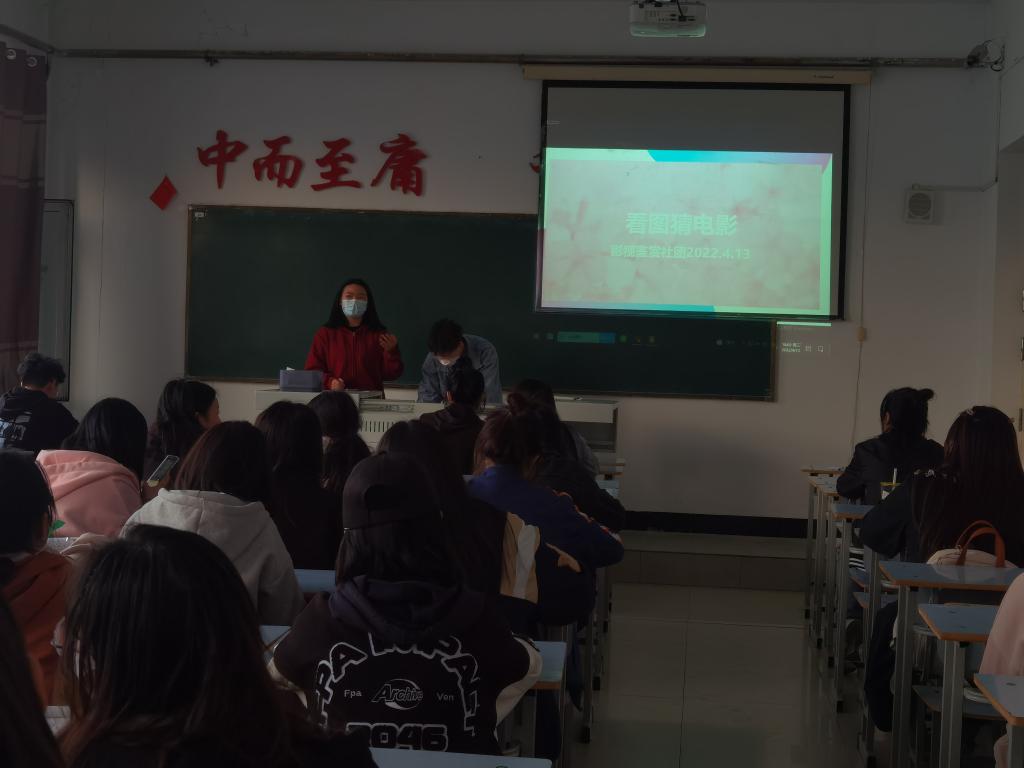 4月13日晚,影视鉴赏社团在1教学区1408室开展看图猜电影活动,活动由社长李彩丽主持,社团成员人数共计64人参加了活动。