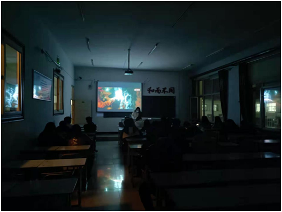 11月25日晚,影视鉴赏社团在1教学区1402教室开展影视鉴赏活动,由社长李彩丽主持,社团成员共计50人参加了观影。