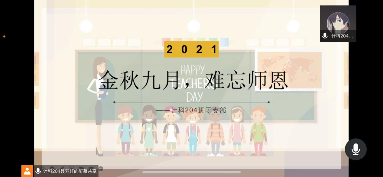 2021年9月10日星期五下午,计科204班于腾讯会议开展“金秋九月,难忘师恩”主题团活,本次团活由团支书马赫主持,班级47人参加本次团活。