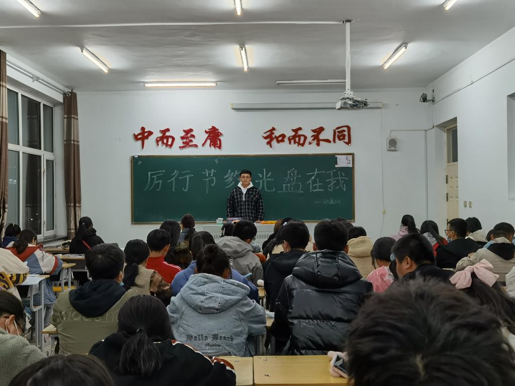 11月2日信息工程系动画201班于1#1308召开“厉行节约,光盘在我”主题团活,本次活动主要由组织委员主持,全体同学参加。