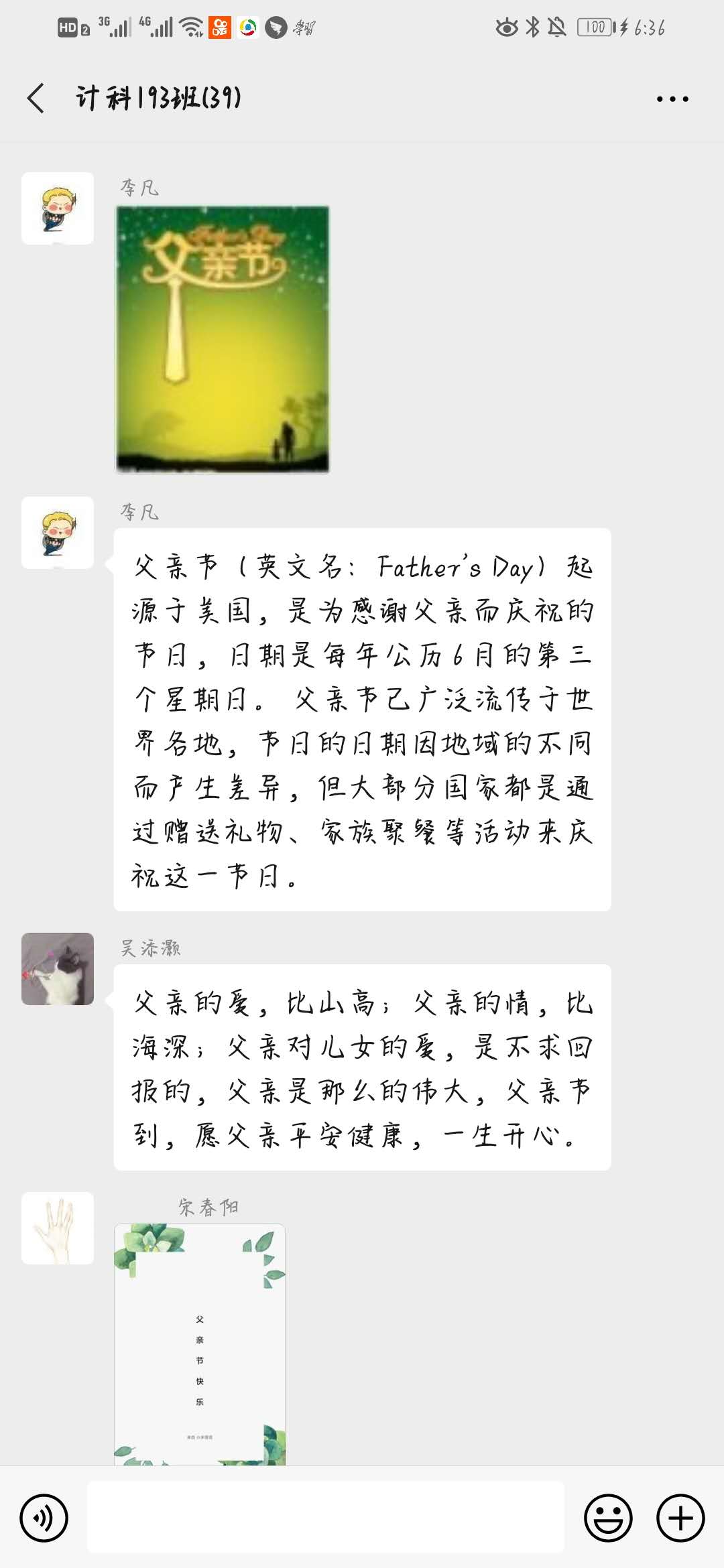 2020年6月21日,计科193班开展“父亲节”主题班会,此次班会由组织委员李凡主持其他同学参加。