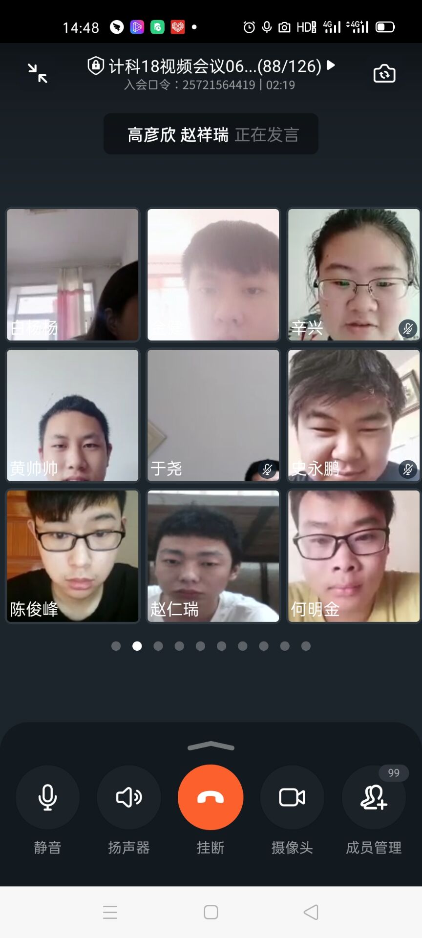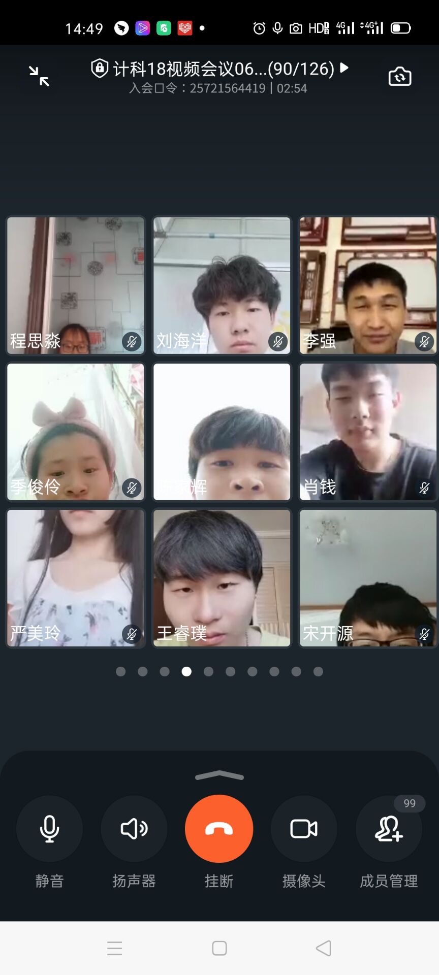 2020年6月18日,18级计科专业召开线上班会,由于是在疫情期间,班会借助钉钉平台举行展开。此次班会由计科专业辅导员郭磊老师组织开展并要求所有同学打开摄像头。