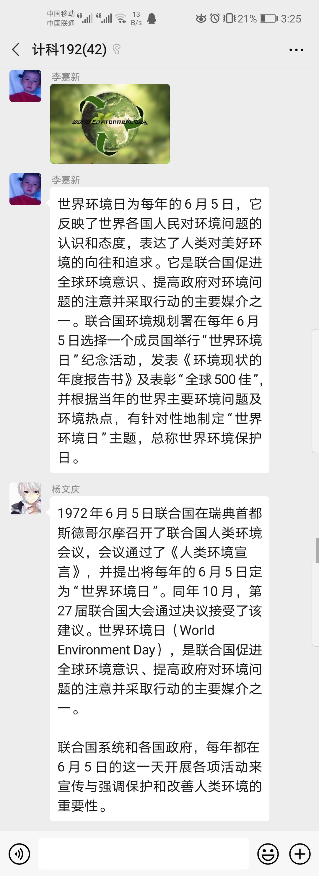 2020年6月5日,计科192班于微信平台开展“世界环境日日”主题团活,此次团活由组织委员李嘉新主持,计科192班全体学生共同参与。
